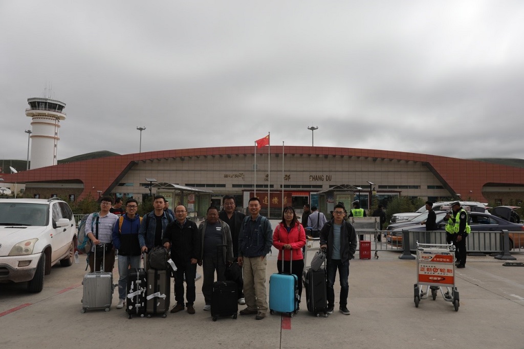 2019年8月3日,第三段青藏科考开始了,由我、云南大学冯卓教授和中国地质调查局成都地调中心安显银工程师等一行8人赴西藏东部昌都-察雅一带进行科考工作,重点研究昌都地区二叠纪的层序变化和藏北地区的相似性。刚下飞机,大家赶紧穿上外套,毕竟高原的气温和平原地区的气温不是一个级别(图24)。