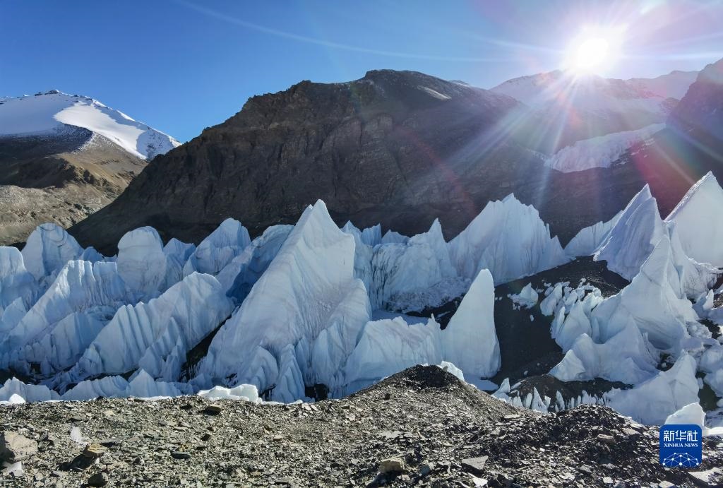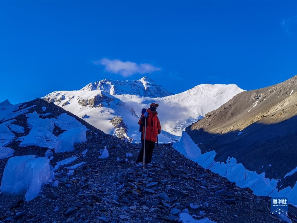 “巅峰使命”珠峰科考中,中国科学院西北生态环境资源研究院研究员康世昌负责的冰川与污染物小组在东绒布冰川海拔6350米以上区域利用先进的仪器,对冰川进行精准测量。