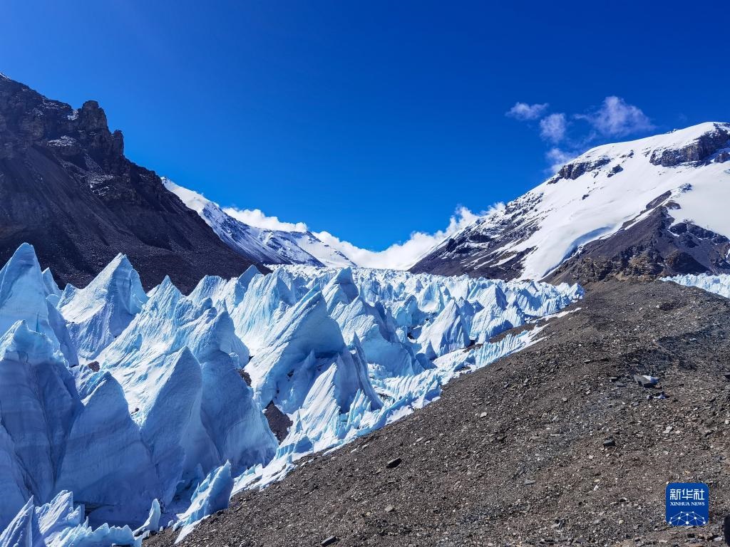 珠穆朗玛峰脚下的东绒布冰川(5月8日摄,无人机照片)。